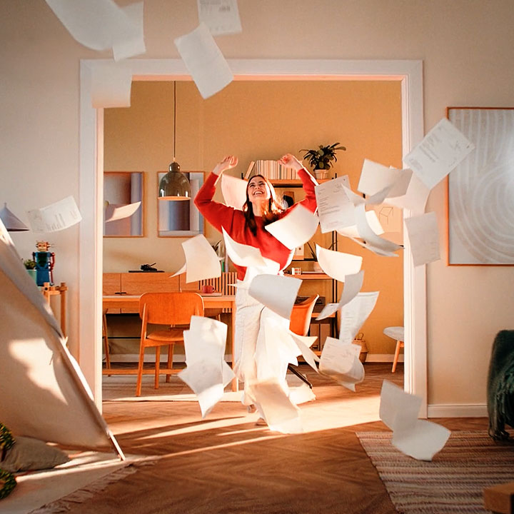 Eine Wohnung mit Balkon wurde zum Dreh-Set. Unsere Aufgabe: Szenen in kürzester Zeit sauber umsetzen. Mit mobiler Videofunkstrecke konnte die Agentur jederzeit reinschauen und direkt abnehmen – ohne lange Pausen im Ablauf. Das Team hat die Wohnung in ein Set verwandelt, alle Shots abgedreht und das Projekt an einem halben Tag durchgezogen. Schlank, effektiv, on point.